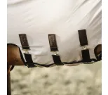 - Kolmiosaisen kiinnityksen ansioista etuosaan tai säkään ei tule painetta, kun hevonen on laitumella