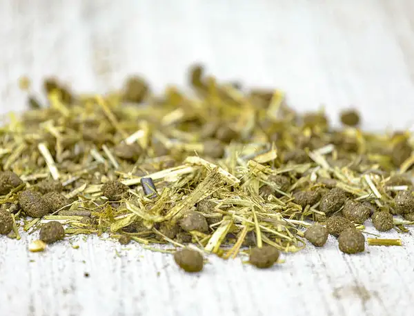 Pellavansiementen kuoret, alfalfa pelletti, auringonkukansiemenrehu, alfalfan varret, speltin kuoret, kauran kuoret, soijaöljy, teff pelletti, herne, juurikasmelassi, pellavansiemen, kuivattu juurikasmassa, monokalsiumfosfaatti, natriumkloridi, kookosrasva, kalsiumkarbonaatti, frukto-oligosakkaridit
