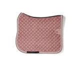 Anna Scarpatin uusi samettipintainen satulahuopa istuu todella hyvin koulupenkin alle! Reilunkokoinen, ja pehmeä huopa, joka ei liuku ja on miellyttävä hevosen selkää vasten. Hillitty, sävy-sävyyn logo pienellä kristalli koristeella. Valitsetko klassisen laivastonsinisen vai vanhanajan roosan huovan? Yhdistä sopivaan korvahuppuun!