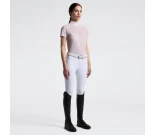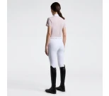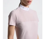 Cavalleria Toscanan lyhythihainen kilpailupikeepaita naisille on suunniteltu tarjoamaan huippusuorituskykyä ja moitteetonta tyyliä. Valmistettu kevyestä teknisestä materiaalista perforoiduilla jerseypaneeleilla, mikä takaa erinomaisen hengittävyyden ja mukavuuden kilpailun aikana. Valkoinen popliinikaulus ja näkymätön vetoketju tuovat sekä eleganssia että käytännöllisyyttä, ja selässä ja kauluksessa oleva lämpöleimattu logo antaa tunnistettavan yksityiskohdan. Ergonominen leikkaus ja korkealaatuiset materiaalit tekevät tästä paidasta täydellisen valinnan ratsastajille, jotka etsivät toimivaa ja tyylikästä vaatetta.