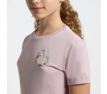 Juniorien lyhythihainen puuvilla-T-paita, jossa on brodeerattu kukkalogo.