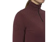 Tyylikäs ja sporttinen Cavalleria Toscana pitkähihainen treenipaita vetoketjulla, värissä bordeaux. Teknisestä fleece ja jersey materiaalista, joka kuivaa nopeasti ja hengittää. Tämä materiaali mahdollistaaettä pysyt mukavan lämpimänä. CT-printti rinnassa ja kauluksessa, puolivetoketju ja brodeerattu logo hihassa.