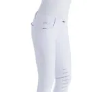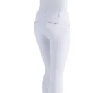 Animon Nallo ratsastushousut joissa AGS-grippi polvipaikat. Taskut edessä, takana koristetaskut. Ratsastushousut ovat koristeltu strassein taskujen kohdalla. Animon logo strasseina oikean etutaskun yläpuolella. Anatomisesti suunnitellut polvet - ei epämukavia saumoja polvessa. Sukkapuntit elastista lycraa. Housujen istuinosassa ohut vuori jotta istut mukavemmin satulassa. Patentoitu Animo Gripping System koostuu läpinäkyvistä paikoista polven sisäpuolella. Housut ovat konepestävät. Kun valitset kokoa, muista että italialaiset koot ovat kaksi kokoa pienemmät kuin eurooppalaiset koot! Housujen mukana tulee hoito-opas! Exclusive riding breeches with jeans pockets on the front and optical pockets at the back. The riding breeches are equipped with strass stones along the jeans pockets and at the back, providing a chic look. The Animo logo above the right pocket is also made of strass stones. Furthermore, the riding breeches have subtle contrast stitching. The riding breeches have an anatomically designed knee, so while riding you don't have painful seams in the knee. The end of the pipes have an elastic and pleasant feeling sock of Lycra, so you won't get damage to the skin, for example because of velcro. The riding breeches are lined very soft on the seat so you sit more comfortably in the saddle. The patented Animo Gripping System consists of transparent patches on the inside of the knee. These patches are more rigid and flexible and provide extra grip and therefore a more stable sit while riding. Made of 88% polyamide and 12% elastane. Made in Italy. Machine washable. Available in the colour bianco. Washing instructions: Inside out at 30 degrees, do not use bleach or fabric softener and do not tumble dry. Before use, read the booklet attached to the riding breeches for more information.