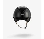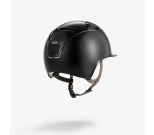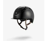 Kevyt ratsastuskypärä, joka on suunniteltu turvallisuutta ja muotoilua silmällä pitäen. Erittäin vahva kuori on valmistettu korkeateknologisista materiaaleista, kuten hiilikuidusta ja komposiittisesta termoplastihartsista. Kypärässä on tyylikäs ulkonäkö mattapintaisella mustalla pinnalla ja kromiyksityiskohdilla. Ruskea leukahihna pikasoljella lisää turvallisuutta.