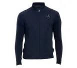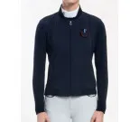 Tyylikäs tummansininen neuletakki, jossa edessä softshellkangasta ja Cavalleria Toscanan logo.