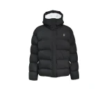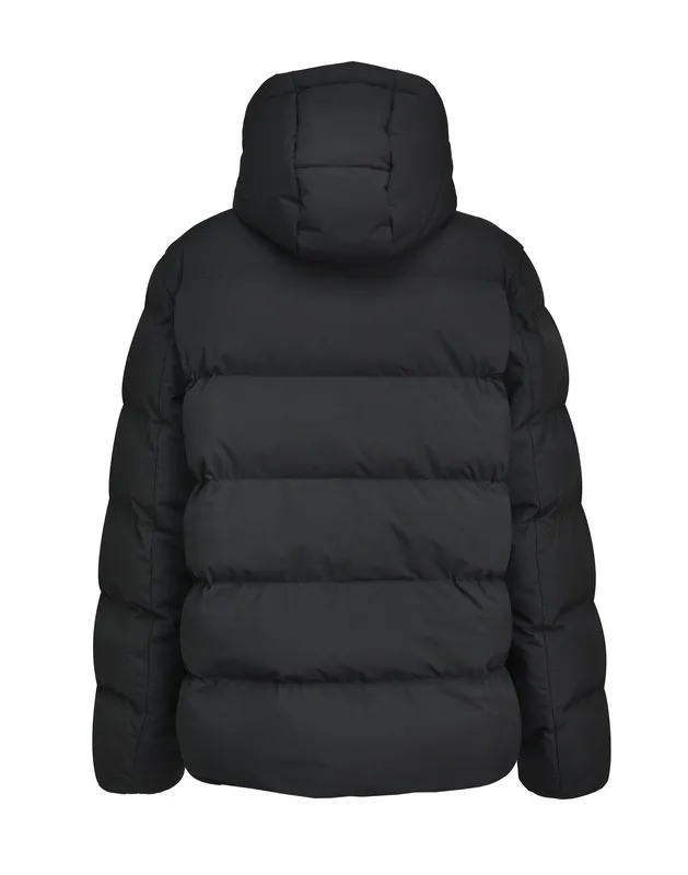 Ajaton, lyhyt ja muhkea puffer takki on erittäin lämmin, mutta silti kevyt. Kiinteä huppu korkealla kauluksella tarjoaa suojaa kylmältä. Tyylikkäät valkoiset yksityiskohdat hupun vuoressa sekä logossa. Vetoketjulliset taskut. Kiristysnyörillä säädettävä helma.