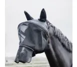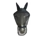 Huvan är gjord av starkt,100% UV skyddande, andande meshtyg och Lycra som hindrar alla typer av insekter att flyga in. Nosdelen är avtagbar, vilket ger dig möjligheten att välja mängden skydd som din häst behöver. Öronen är gjorda av starkt och effektivt flugstickningsnät som är behagligt för hästen då det är lätt och andas väl. Plastbygeln på pannan gör att masken inte ligger nära hästens ögon och alltid poppar tillbaka till sin ursprungliga form. Masken stängs med dragkedja och en tryckknapp under hästens käke.