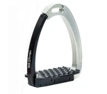 En säkerhetsstigbygel i lutande modell (2,5°) som hjälper dig hålla ner hälarna i stigbygeln. Finns i 18 olika färgkombinationer.