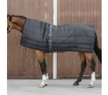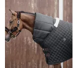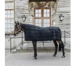 The horse duvet can, thanks to its big rectangle shape (200 x 180), be used on different types of horses. This is very practical for riders with multiple horses as the rug always fits. The rug stays, thanks to the polyester microfiber, in place under other rugs. If you want to use an elastic to keep the rug in place, nylon girth straps are provided. For extra grip, the cotton sheet can be used under the under rug. The extended neck piece offers extra cover. And because of the lack of pressure between the rug and manes, there is no rubbing. The neckpiece also can be folded over for extra coverage.