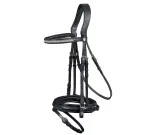 Kvalitetsträns med pullback nosgrimma och anatomiskt nackstycke från Waldhausen. Nackstycket ger gott om utrymme för öronen. Tyglar medföljer. Storlek full finns i lager.