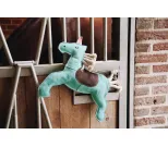 Leksak till hästen. Utmärkt till hästar som lätt blir uttråkade i boxen. Ger ifrån sig ett prasslande ljud då hästen trycker på enhörningens mage. Går att öppna.