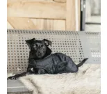 The dog coat original has a filling of 160g. The coat features an artificial rabbit skin lining for extra comfort. The lining creates tiny air pockets that trap and retain the body heat of the dog. The soft lining also polishes the dog’s hairs, for a shiny coat. There’s a little hood provided on the neck. The hood is made from artificial sheepskin and offers comfort and warmth. The outer fabric is made of 1000D high tenacity polyester to ensure it is resistant to tearing. The diamond quilting ensures a classy and timeless look.