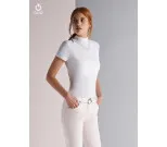 I denna kvalitetsprodukt från Cavalleria Toscana är helt underbar. Tekniskt material och vacker design. Funktionell. En underbart lätt tävlingsblus av hög kvalitet. Stämplade detaljer upptill mönstrade i ett V. Välj mellan detaljer i grått och puderrosa eller mörkblått.