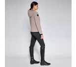 Upplev den perfekta blandningen av stil och funktionalitet med denna softshell-jacka i dammodell. Utformad för dem som uppskattar både mode och teknisk prestanda, är denna jacka ett måste i din garderob. Det perforerade tyget inte bara förbättrar andningsförmågan utan också säkerställer en oöverträffad komfort, vilket gör den till ett idealiskt val för utomhusaktiviteter och ridäventyr. Huvan ger ett extra skyddslager och ökar mångsidigheten för att hantera olika väderförhållanden. Höj din utomhusupplevelse med denna eleganta och funktionella softshell.