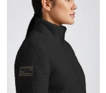 Designen har en övre del i fleece för optimal komfort, medan den nedre delen i quiltad nylon ger en modern och funktionell touch. De mattsvarta dragkedjorna på mitten och i fickorna ger ett modernt utseende. Fickorna, fodrade med lätt fleece, håller även händerna varma.