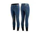 En ridbyxa med knägrip i stretchande jeanstyg för damer. Normalhög midja, inga sömmar som skaver.