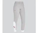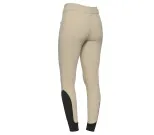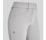 Det fyrvägsstretch-tekniska jersey-material som används i dessa ridbyxor ger maximal andningsförmåga och rörelsefrihet: detta tyg anpassar sig perfekt till din kropp, utan inskränkningar. Den höga midjan har ett grip-material på insidan av linningen, vilket ger rätt passform över din tröja. Det har också breda bältesöglor för att rymma ditt ridbälte. Den transparenta knägreppet ger rätt stabilitet, medan de stretchstickade strumporna passar bekvämt under dina stövlar. Det lättskötta materialet har antibakteriella egenskaper och UV-skydd, perfekt för din sommarträning.