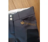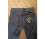 Ridbyxor av sportigt material. Fickor både fram- och baktill. Kingslands logo broderad på en av bakfickorna, samt på en av framfickorna. Byxorna är förstärkta vid knäna, har bältesöglor i midjan och ett område med tunnare material närmast foten.