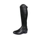 Svarta stövelskaft i fuskläder som formar sig efter vaden. Elastiska paneler på båda sidorna av dragkedjan. Stiliga strassutsmyckningar