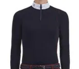 Formsydd polotröja med kort dragkedja och dekorativa smådetaljer.