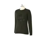 En underbar ylletröja i merinoull. Färgerna mjukt mossgrön eller djuprosa-röd. På bröstet ett charmigt print med hästmotiv.