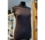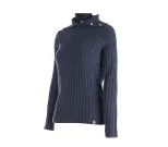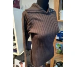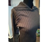 Stickad tröja med hög krage för dam. Knappar på kragen.