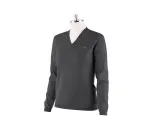 En V ringad pullover i underbart välsittande skärning. Materialet det bästa tänkbara. Ylleblandning. Tål många tvättar. Lika fin till vardag som till stallet. Små stickade detaljer längs sidorna. Finns i silvergrå och mörkblå.