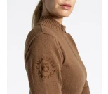 Tämä pooloneule puolivetoketjulla yhdistää hienostuneen tyylin ja suorituskyvyn – täydellinen viileämpiin päiviin. Hienolaatuisesta villasta valmistettu neule tarjoaa lämpöä ja mukavuutta tinkimättä hengittävyydestä. Käännetty neulospinta olkapäissä ja sivuilla korostaa vartalon linjoja ja antaa asulle elegantin viimeistelyn. Neule on yhtä aikaa elegantti ja tekninen, täydellinen sekä ratsastukseen että vapaa-ajan hetkiin tallilla.
